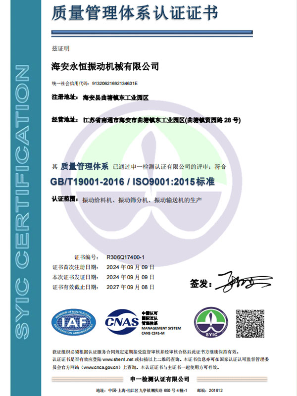 質(zhì)量管理體系認(rèn)證證書(shū)